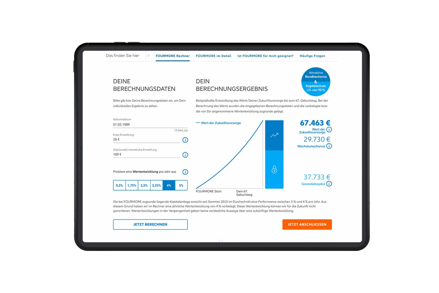 • Vorsorgerechner ermöglicht individuelle Anpassungen