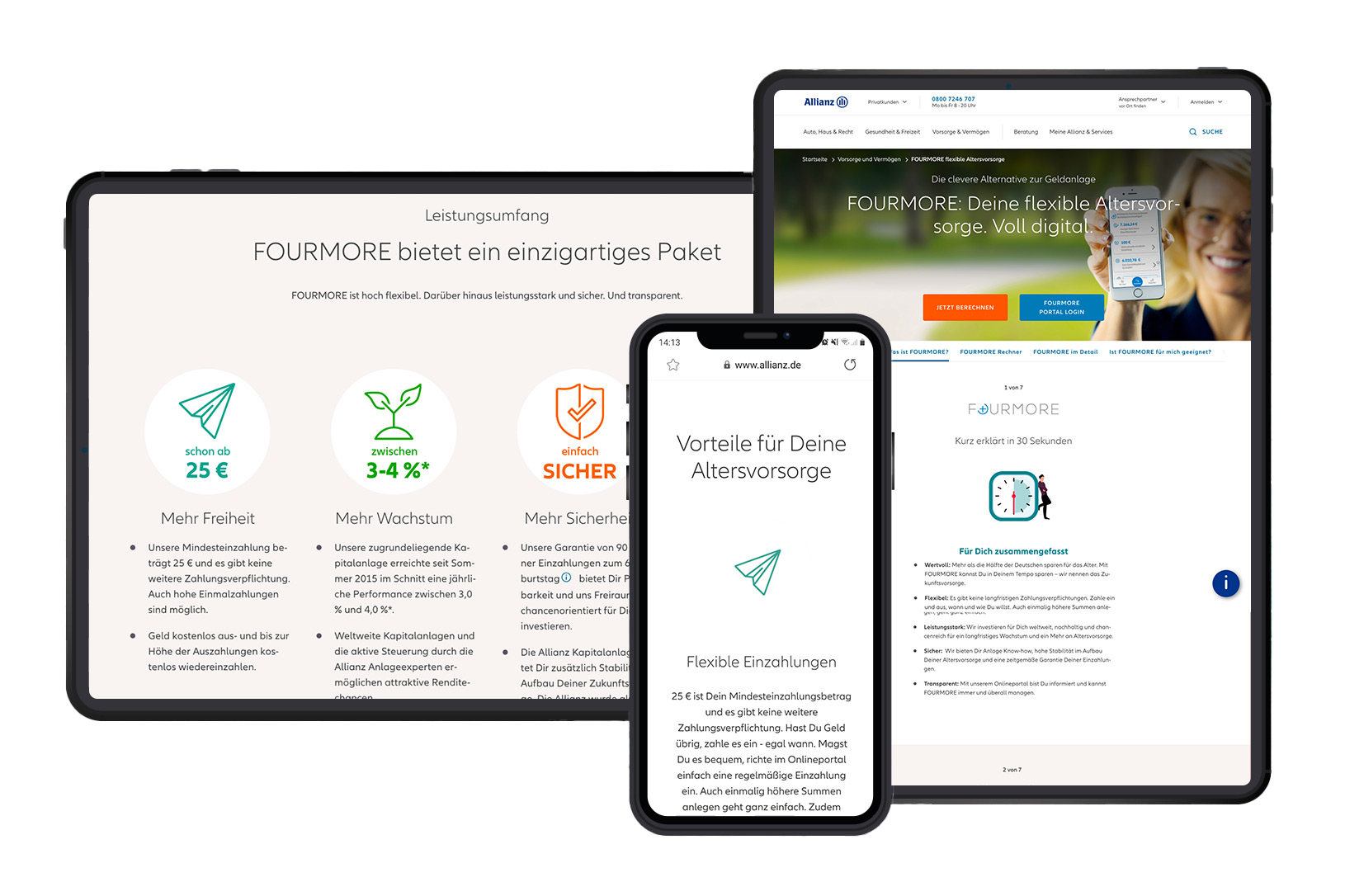entwickelt die Allianz eine Altersvorsorge, die komplett digital funktioniert – vom Abschluss bis zur Verwaltung. Das erste Produkt seiner Art. Die Rolle von port-neo: eine Positionierung des Produktes und eine Kommunikation entwickeln, die die Zielgruppe aktiviert. Dazu gehören der passende Look und Content. FOURMORE steht damit als gelungenes Beispiel eines End2End-Kundenerlebnisses auf Basis der Adobe Experience Cloud.