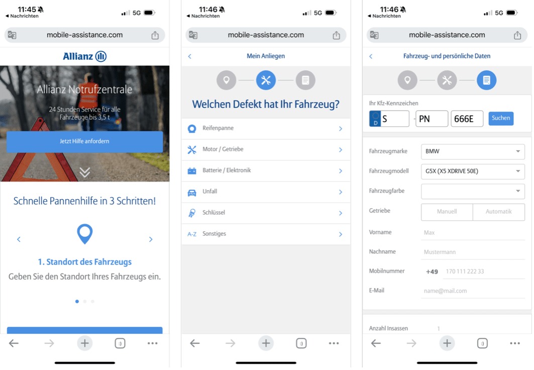 ich keine Zeit in nervigen Hotlines verbracht habe, nicht zig mal meine Daten wiederholen oder mir gar wichtige Informationen (Schadensnummer usw.) notieren musste. Dabei volle Kontrolle über den Prozess hatte, da ich jederzeit die Allianz und den Abschlepper kontaktieren konnte. Und volle Sicherheit, da ich jederzeit im Bilde war – darüber wie lange es noch gehen wird, wo genau sich der Abschlepper befindet und ob mein Auto angekommen ist.