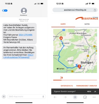 Gut, also holte ich kurz Luft. Atmete tief ein und aus, und erinnerte mich, dass wir nicht nur ‚hoffentlich‘, sondern ‚tatsächlich‘ allianzversichert sind. Ich googlete also die Allianz Schaden Nummer und bekam, nach einem sehr schnellen Sprachdialog und der Eingabe von 2 Ziffern, die SMS, über die ich die Pannenhilfe online aktivieren konnte.