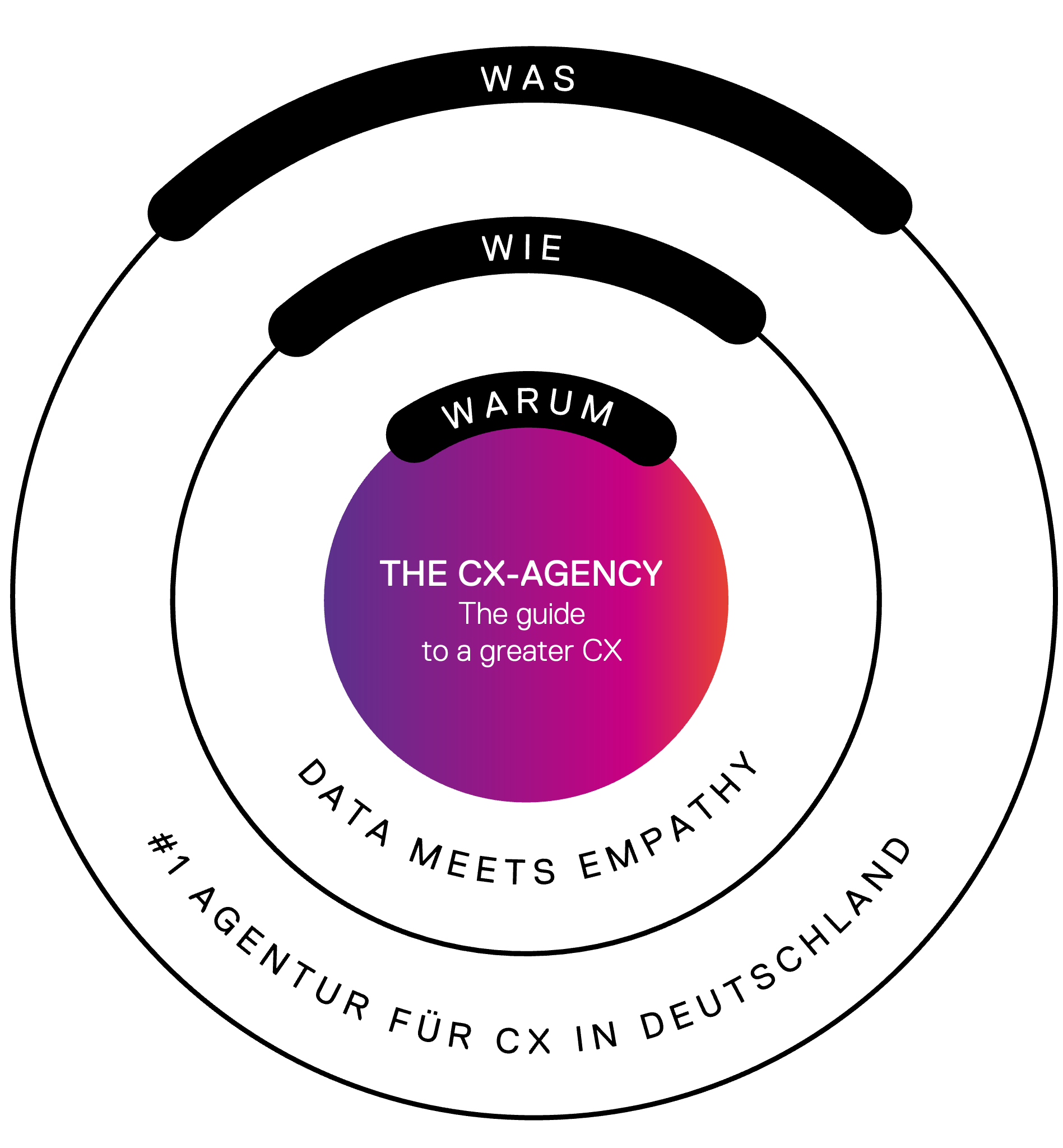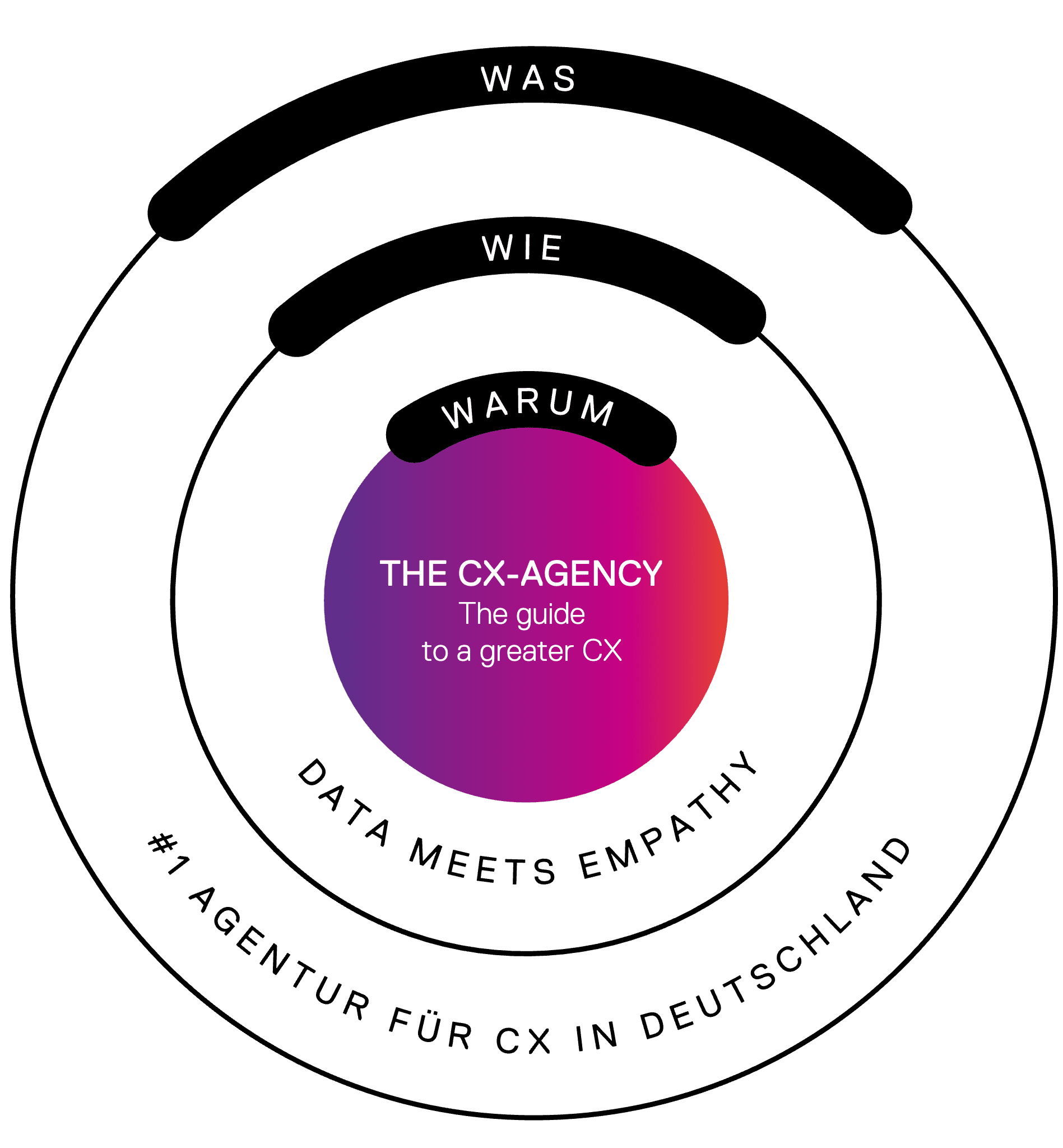 Als strategischer Partner und Umsetzer der gesamten CX eröffnen wir unseren Kundinnen und Kunden die ganzen Chancen der Kundenzentrierung damit sie gewinnen! (LZ) Und werden die Nummer 1 Agentur für Customer Experience in Deutschland. (Vision & Brand Perception)
