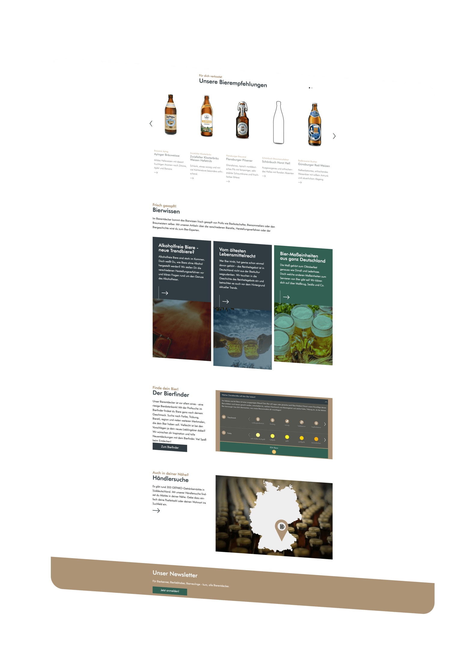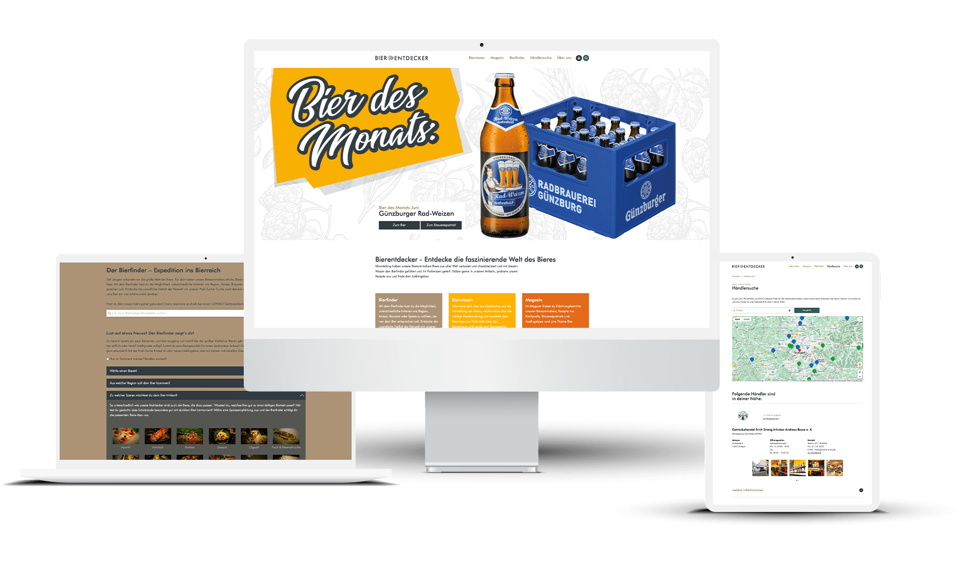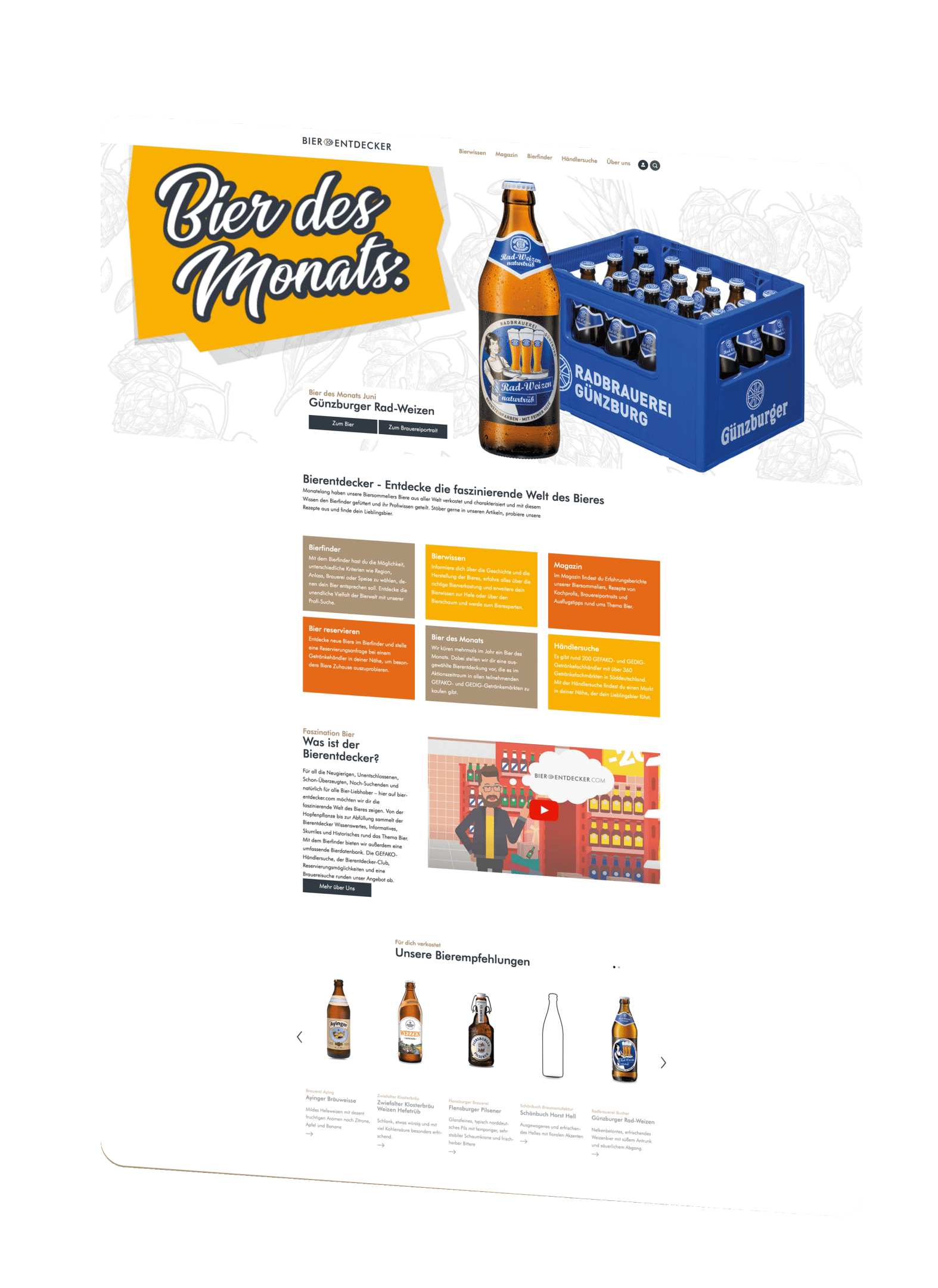 Mit dem Ziel, die Bier-Beratung zu digitalisieren und eine aufklärende, informative Plattform für Endkunden zu bieten, wurde die Website bierentdecker.com ins Leben gerufen. Sie ist eine umfassende Wissensplattform, die mit fundiertem Expertenwissen angereichert wird und zugleich von den Händlern selbst im Beratungs- und Vertriebsprozess genutzt werden kann.