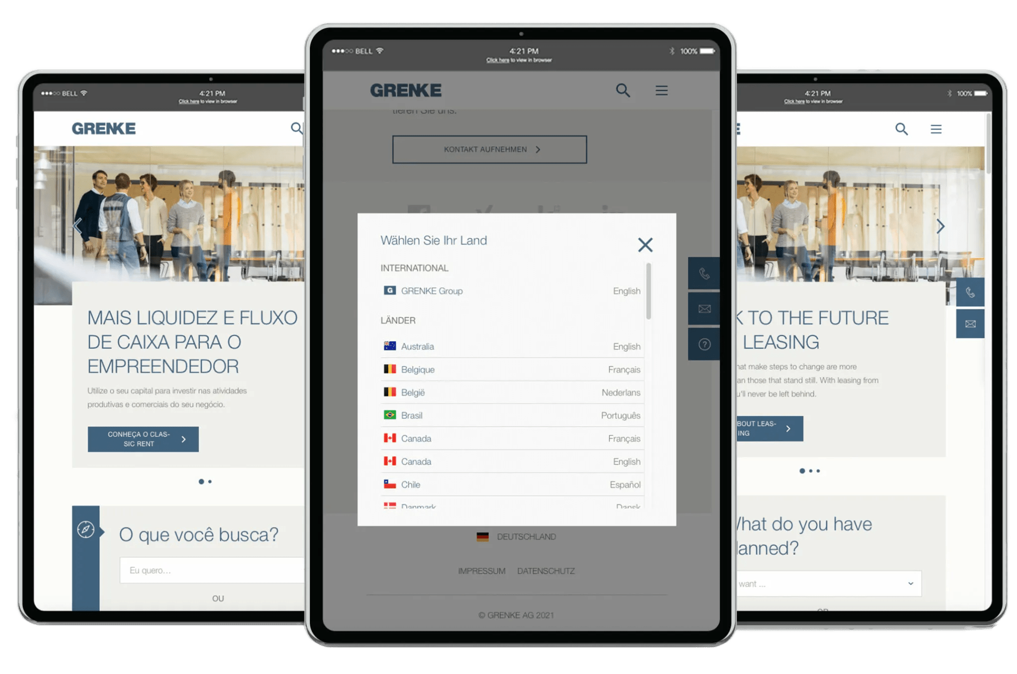 Außerdem geht es von Baden-Baden in die Welt: Entsprechend der länderspezifischen Anforderungen wird der Content angepasst und für 33 Länder zum Roll-Out aufbereitet. In Form von Kampagnen (intern und extern) wird die Marke publiziert und vor Ort bei den Zielgruppen platziert. Im Bloomreach Experience Manager werden dabei auch individuelle Ländervorgaben berücksichtigt. Anhand der Analyse-Ergebnisse, die wir aus aus Daten und Dashboards ablesen können, optimieren wir gemeinsam mit dem Team von GRENKE den Content und überprüfen die Conversions. Damit das Unternehmen auch weiterhin Erfolgsgeschichten schreibt.