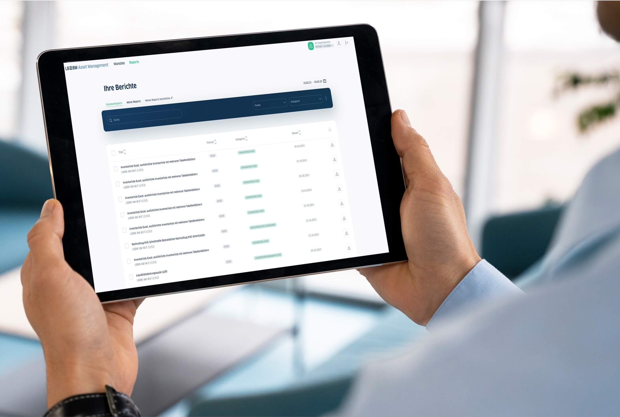 Alle Daten zu Investments, stets aktuell, mit hohen Sicherheitsstandards, verfügbar auf allen Arten von Endgeräten und verbunden mit einem überzeugenden Design und exzellenter Usability – all das sind Anforderungen, die Kundinnen und Kunden der LBBW Asset Management an ein modernes Reportingportal stellen. Aber nicht nur das: Auch der Funktionsumfang muss dabei ein breites Spektrum an Anwendern von Anfang an überzeugen und die Möglichkeiten moderner Business Intelligence Dashboards mit einem klassischen Kundenreporting sowie der Option, interaktiv selbst Berichte zu erstellen, verbinden. Hinzu kommt zudem, dass leistungsfähige Such- und Filterfunktionen sowie die Abfrage individueller Zeiträume, eine automatisierte Scheduling-Funktion und vielfältige weitere funktionale Highlights schon beim ersten Anmelden an das neue Portal eine ideale User-Experience ermöglichen sollen.