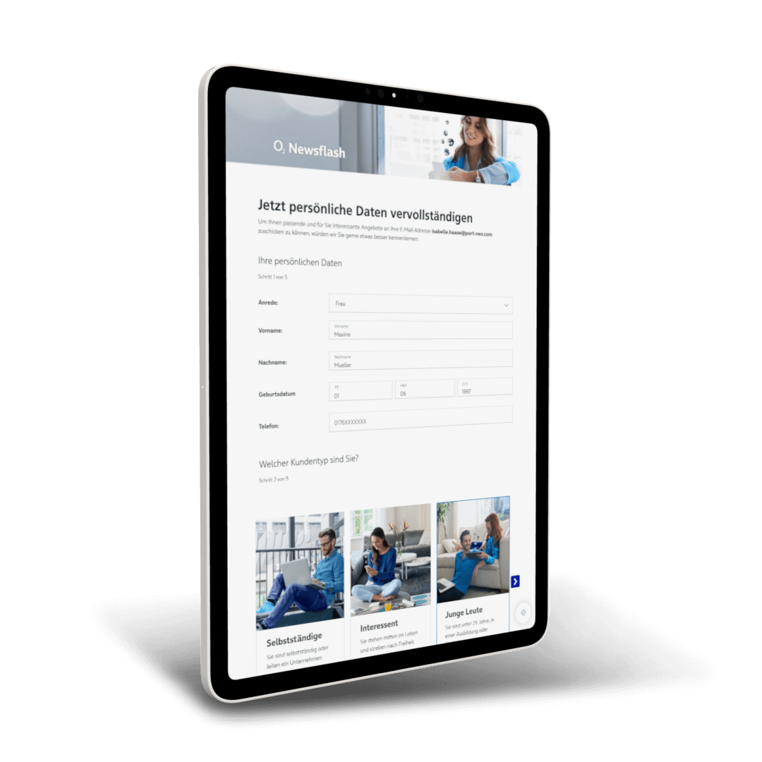 Selbstbestimmung für Kunden, Motivation für Mitarbeiter: Wie schafft man ein kanalübergreifendes Kauferlebnis und stellt gleichzeitig eine faire Provisionierung von Mitarbeiterinnen und Mitarbeitern sicher? Für o2 von Telefónica entwickelt mission-one (Teil der port-neo Gruppe) dafür ein ausgeklügeltes Leadmanagement-Tool, das die stationären Stores mit den Online-Kanälen verbindet. Hinzu kommt die vollständige Abwicklung des E-Mail-Managements – von der Content-Erstellung für einzelne Mailstrecken bis zur technischen Umsetzung. So entsteht eine rundum stimmige Customer und Employee Experience.