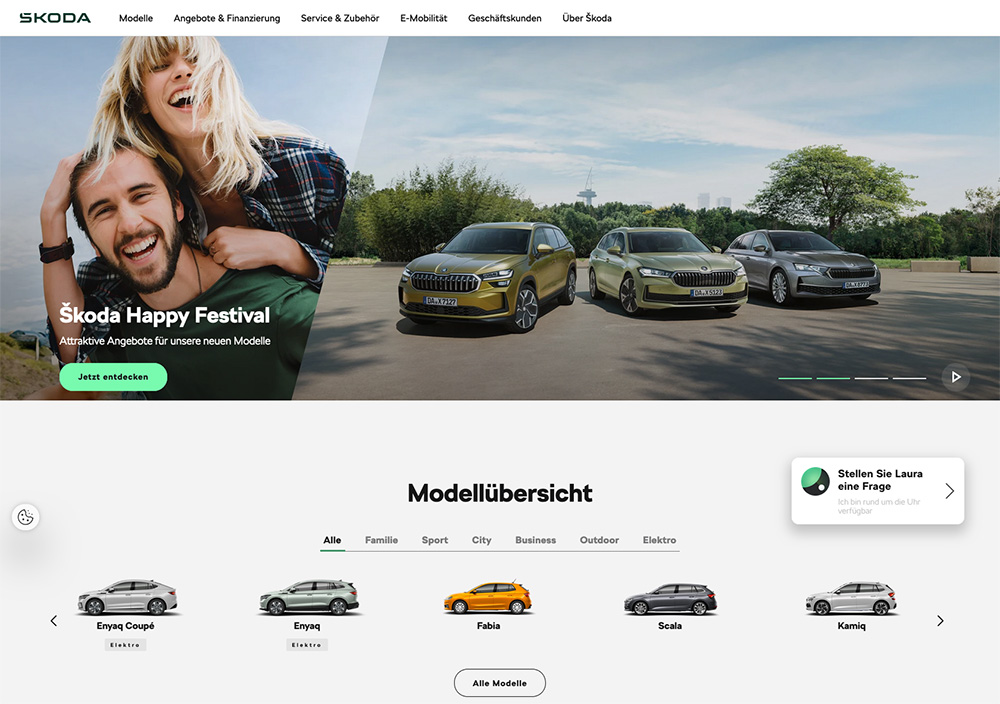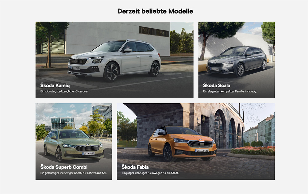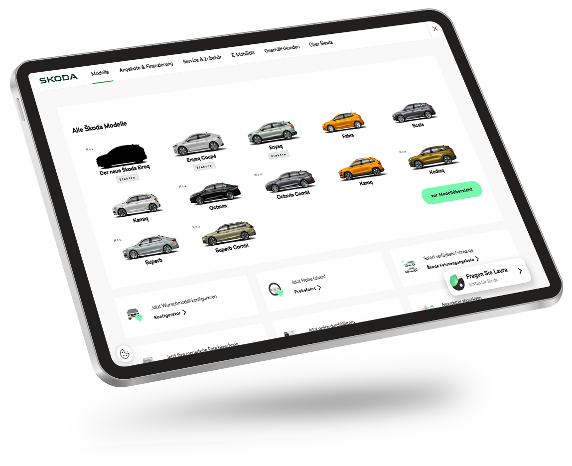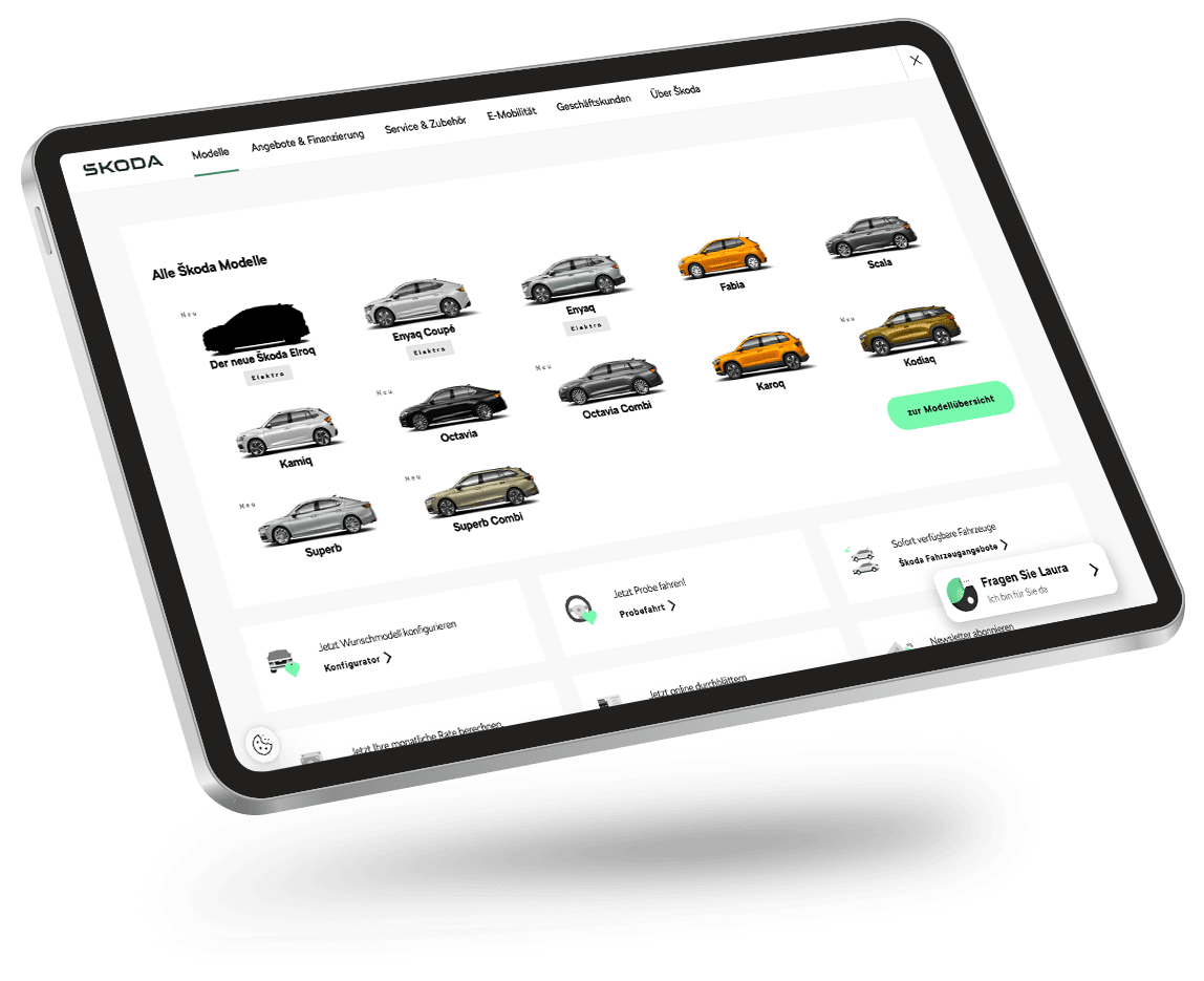 Basierend auf unserer Analyse haben wir UX-Modelle für eine zielgerichtete Nutzerführung und damit die Stärkung des Online-Vertriebs überarbeitet. Auf dieser Basis haben wir rund 200 Unterseiten optimiert, CTAs an den relevanten Stellen gesetzt und die Navigation modifiziert. Wir haben außerdem den gesamten Kommunikationsprozess der Probefahrt (von der Fahrzeugkonfiguration bis hin zur Testfahrt beim Škoda-Händler) digitalisiert – ein wichtiges Instrument der Neukundengewinnung. Im Ergebnis verbinden wir so die digitalen Anforderungen der Kundinnen und Kunden mit den analogen Bedürfnissen, ein neues Auto vorab zu testen.