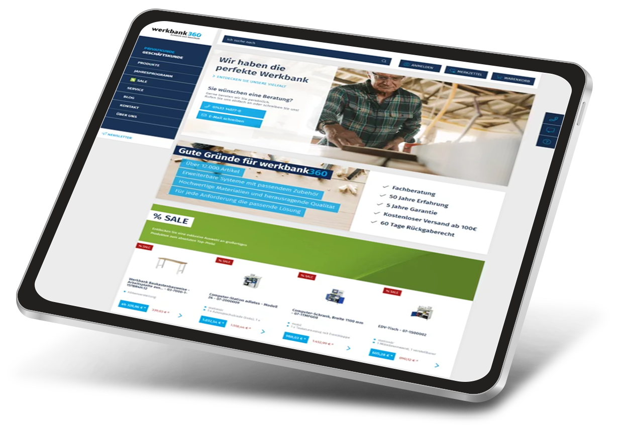 Mit einer neuen E-Commerce-Lösung kreieren wir gemeinsam mit Werkbank360 ein CX-optimiertes Kauferlebnis und bauen ihre führende Position im Bereich hochwertiger Werkbänke und Arbeitsplatzeinrichtungen weiter aus.