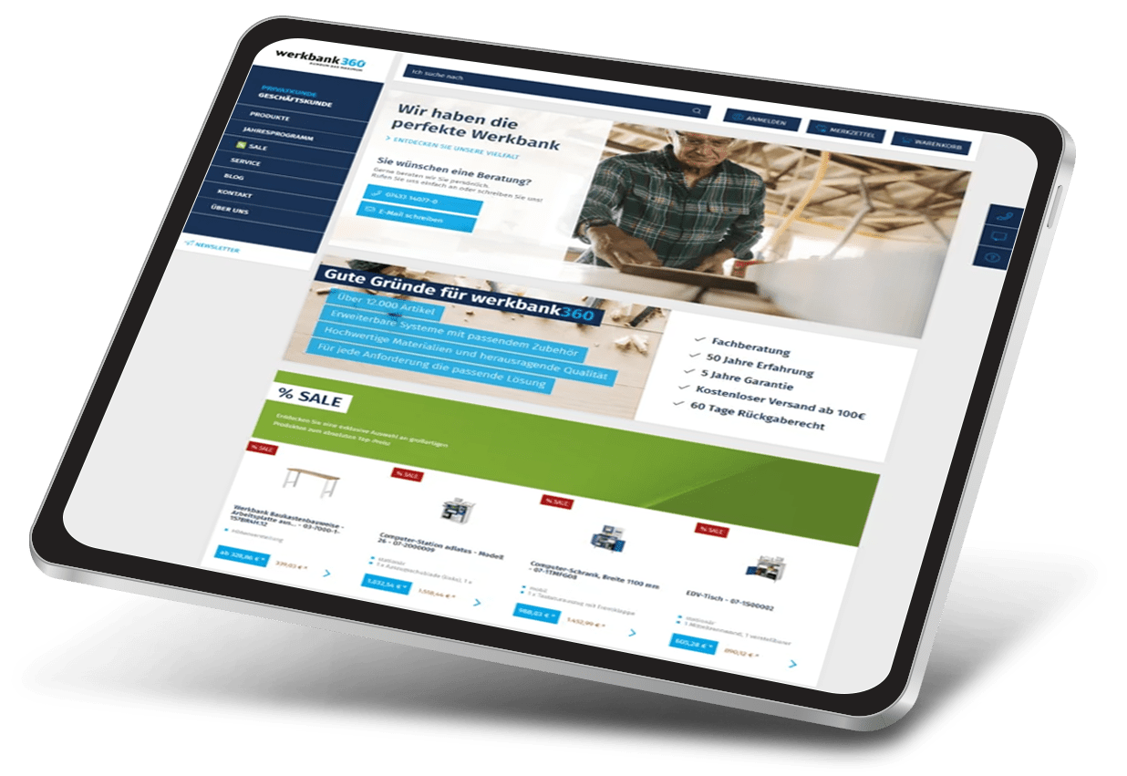 Mit einer neuen E-Commerce-Lösung kreieren wir gemeinsam mit Werkbank360 ein CX-optimiertes Kauferlebnis und bauen ihre führende Position im Bereich hochwertiger Werkbänke und Arbeitsplatzeinrichtungen weiter aus.